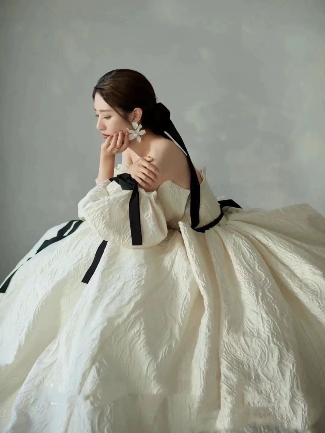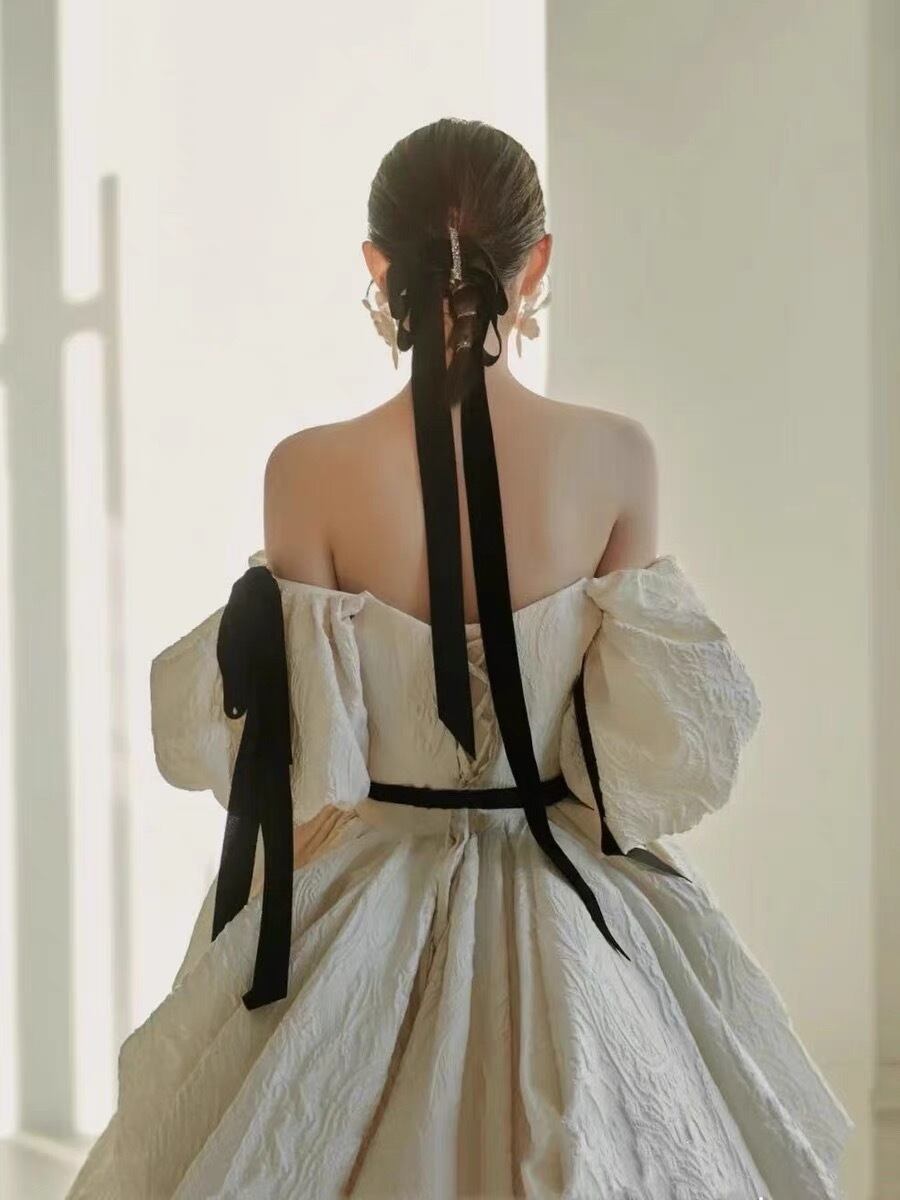 ウェディングドレス オフショルダー ボリューム袖 パフスリーブ Aライン 二次会 前撮り(WD242131)