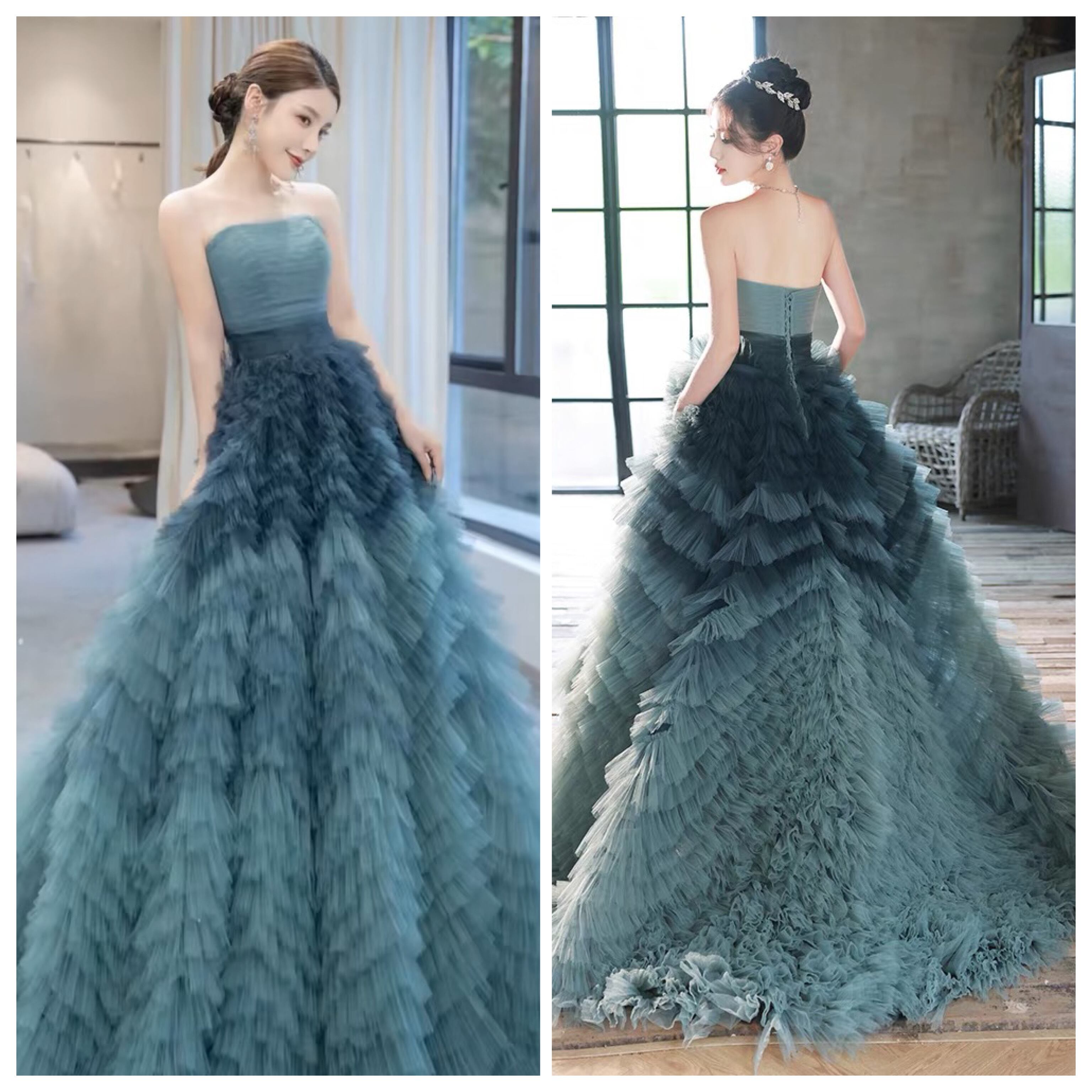 カラードレス ロングドレス フリル ビスチェ パーティー ウェディングドレス 結婚式 二次会 前撮り(WD242104)